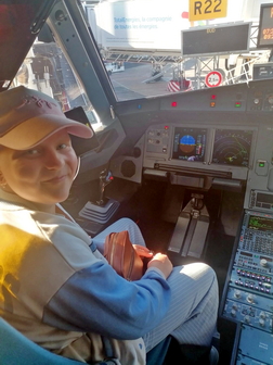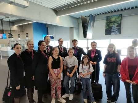 Early in the morning, the small group met at the airport. The two families got to know each other and waited excitedly for departure. With the help of the WizzAir representative, we were the first to board the plane. Blanka and Milán each received a gift package from the crew, and upon landing in Paris, they were allowed to see the “sea of displays” inside the cockpit.