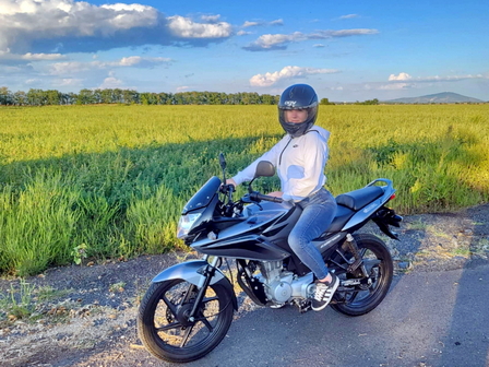 Nagy öröm számára, ha szólnak a barátok és nem kell a buszra várni, csak motorra pattan felkapja a bukósisakot és indulhat is.