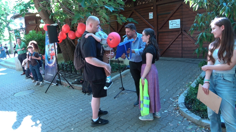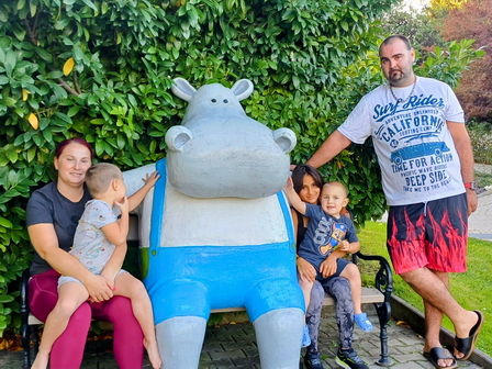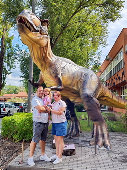 Már a bejáratnál található hatalmas dinoszaurusz is teljesen elvarázsolta, ezért a kép is ott készült el a szüleivel együtt. Leginkább a halacskákat szeretné megnézni az állatparkban. Este a zenélő szökőkutat is megnézik és ha kedvük tartja, a Tirpák Fesztiválra is kilátogatnak majd a belvárosba.