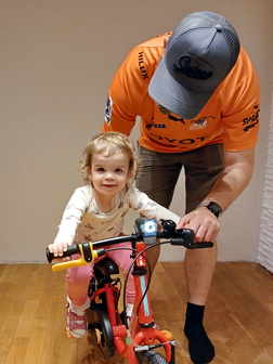 Olívia kívánsága egy szobai hinta és egy kisbicikli volt. Bizonyára a hintát is nagyon fogja élvezni – ott jártamkor még nem volt felszerelve – de egyelőre a piros biciklijéről le sem akar szállni, annyira örül neki.