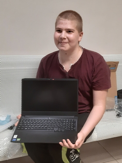 Zsolt kezelésre érkezett a klinikára, de előtte nagy öröm érte, átvehette a várva várt laptopot, így egy kicsit vidámabban vágott bele a mai kezelésekbe. Az biztos, hogy az iskolai tanulásban nagy segítségére lesz a laptop.