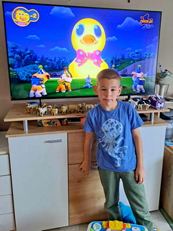 Bence már nagyon várt bennünket és a hőn vágyott LCD tévét is. Beüzemelés után (amit öccsével együtt alig bírtak kivárni) rögtön birtokba vették és megkezdték a mesék nézését.