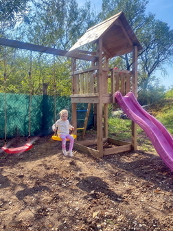 A kinti játék egy gyerek számára mindig a legjobb időtöltés. Nagyon szeret a szabadban lenni Zoé is, így a játszótér nagyon jó feltöltődést nyújt majd számára. Zoé személyes kedvence a csúszda lett, de a tesóval mindig jólesik egy kis közös hintázás is!
