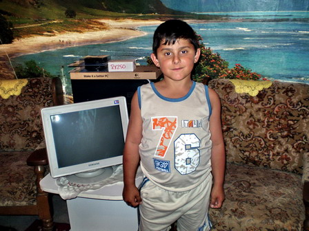 Hosszú utat kellett megtennünk, míg sikerült elérnünk Dávidhoz a számítógéppel. Dávid már nagyon izgatott volt, hogy mikor kapja meg a régóta várt ajándékot. Bár kicsit meg volt szeppenve, mikor megérkeztünk, de azért boldogan mosolygott az átadáskor. Sürgette is apukáját, hogy gyorsan szereljék össze a gépet, hiszen ő máris játszani akar vele.