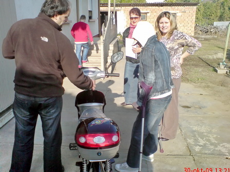 Nem volt egyszerű egyeztetni az ajándékátadás időpontját a ceglédi kislánnyal. Kórházi tartózkodása elhúzódott, de anyukájával tartott kapcsolatunk meghozta gyümölcsét. Október utolsó hetében otthon tartózkodott Maxika, így el is indultunk, hogy végre kipróbálhassa gyönyörű, mély bordó színben pompázó elektromos kerékpárját.