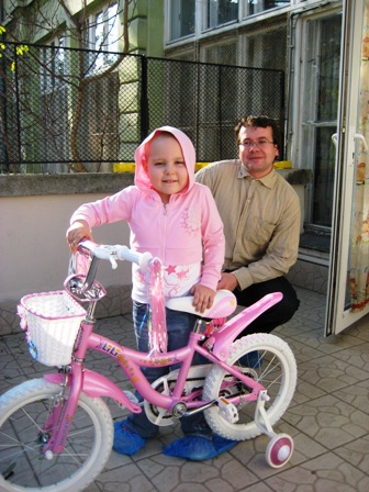 Mirjamnak ma nagyon jó napja volt, mert a délután során kisebb ajándékot kapott szép rajzaiért. Úgy hallottuk, hogy ezen a programon csak a biciklin ülve volt hajlandó bármit is csinálni.