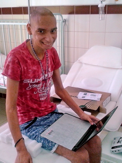 Kis idő múlva bementem a kórterembe, átadtam neki a laptopot. Eleinte szóhoz sem jutott, csak nézett, de utána fülig ért a szája! Remélem, sok örömöd lesz benne!
