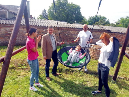 Közben lassan elkészült a hinta és kimentünk az udvarra. Dorina őszinte nevetéssel örült, és köszönte az ajándékát. Ki sem akart szállni belőle, mikor eljöttünk még mindig hintázott. Egy igazi cserfes, okos, vidám kis hölgyet ismertünk meg, aki nagyon sokat fogja használni a hintáját.