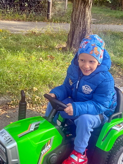 Tibuci egy nagyon mosolygós és vidám gyermek. Az álma egy traktor volt, amit tud irányítani. Amikor meglátta a traktort aznap csak úgy sugárzott az öröm az arcáról.