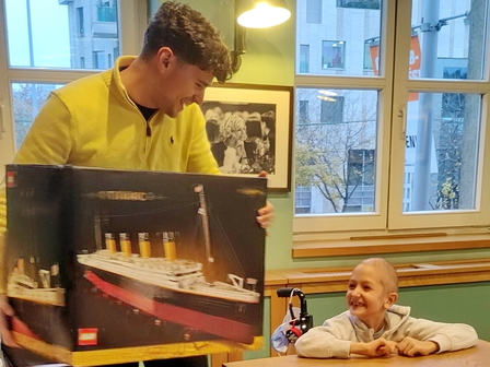Dávid kívánsága a klinikán teljesült, ahol kezelésen volt éppen, amikor megjelentem a hatalmas dobozzal. Ahogy meglátott, azonnal felragyogott az arca – nem győzött betelni a meglepetéssel.