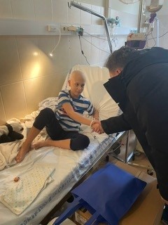 Dávid kívánsága a klinikán teljesült, ahol kezelésen volt éppen, amikor megjelentem a hatalmas dobozzal. Ahogy meglátott, azonnal felragyogott az arca – nem győzött betelni a meglepetéssel.