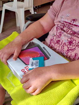 Dorina szeret kártyázni, mesét nézni, kreatív dolgokkal foglalkozni. Betegségéből kifolyólag sajnos sokat van kórházban, ezért is gondolta úgy, hogy egy tablet sokat segítene neki a hasznosabb és élvezetesebb időtöltésben.