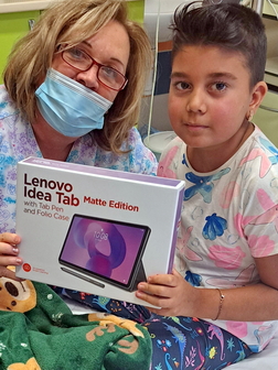 Bogikát már nagyon régen ismerem. Most újra kórházban kezelik. Bogi egy bájos, kedves, csacsogó kislány. Minden vágya az volt, hogy legyen egy tabletje, amin meséket és zenét nézhet, játszhat, és a szeretteivel beszélgethet.