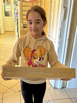 Az ajándék átadása igazi kis kaland volt, mivel Dorináék messziről érkeztek, az első buszt lekésték, így délelőtt elkerültük egymást.