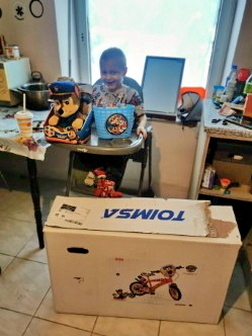 Kívánsága egy kerékpár volt, aminek nagyon örült. Amikor meglátogattam őt és átadtam a kerékpárt, 20 cm-es hó vett minket körül. Ezért egy ideig a lakásban gyönyörködhet az ajándékában.