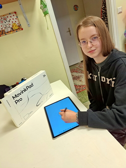 Annácska nagyon boldog volt, örült a tabletnek, csak kezdetben nehezen oldódott fel, de lassacskán elmondott pár dolgot magáról. Megtudtam, hogy milyen tantárgyakat szeret az iskolában, és hol szeretne tovább tanulni, s milyen álmai vannak a jövőre nézve. Később megmutatta a grafikai, és animációs munkái is, és az is kiderült, hogy 1 éves kora óta rajzol.