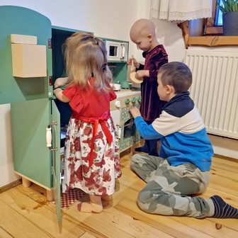 Amint megérkezett a várva várt ajándék, Ilona azonnal birtokba vette, és testvéreivel együtt már neki is láttak a „főzésnek”. Jó volt látni nemcsak az ő, hanem a testvérei örömét is, hiszen a közös játékból igazi családi program született. A szobát betöltötte a nevetés, a kis edények vidám csörömpölése, és a felszabadult, önfeledt hangulat, amely mindenkit mosolyra fakasztott.