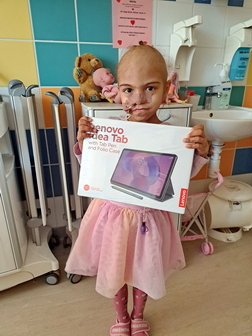 Janka szülinapjára meg is kapta a tabletet a Csodalámpa Alapítványtól. Nagyon boldog volt, hogy a különleges alkalomból a sok lufi és torta mellett magáénak tudhatja a tabletet is!