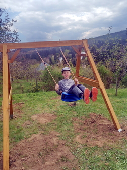 Ábel nagyon szeret hintázni, minden vágya volt egy igazi, masszív hinta, ami bírja a strapát és kedvére hajthatja, akár a későbbi években is. Nagy öröm volt számára, amikor hazaérkezett az iskolából és a hinta ott állt az udvaron. Azóta minden szabad percét hintázva tölti.