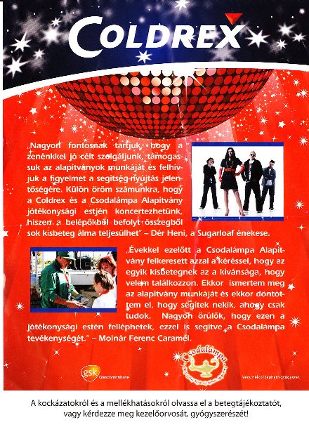 A GlaxoSmithKline CSR kampányának záróakkordjaként sztárvendégek - Molnár Ferenc Caramel és a Sugarloaf - részvételével koncertekkel egybekötött korcsolyázást szervezett a Coldrex a WestEnd Jégteraszán. A szerény, 400 Ft-os belépődij is a Csodalámpa támogatását szolgálta.